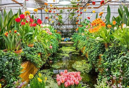 Около 10 тысяч тюльпанов, нарциссов, крокусов, гиацинтов, мускари, а также лилии, луки, ландыши, сирень, подснежники, вишня, сакура, магнолии, миндаль и прочие растения расцветут на 2 месяца раньше природного срока, чтобы порадовать Москву к началу весны.