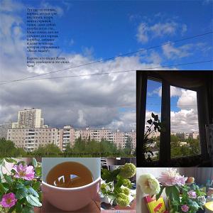 Мой двор как большая розовая чашка. Заварка, это в основном клены, березы, дряхлеющие липы, есть и елка с красными, как мне пояснили, стробилами (шишками). В качестве сахара — один нормальный детский сад и один бывший детский сад, облюбованный экспатами и переделанный в Бритиш Скул. И не жалко. Да ради бога... Пар над чашкой всегда разный.