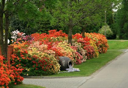 Замечательный демонстрационный сад удалось посетить в современном, хорошо оснащенном хозяйстве семьи Пуделек (Pudelek), специализирующемся на выращивании деревьев, кустарников, различных лиан и многолетников, среди которых львиную долю занимают рододендроны, азалии, верески и другие родственные растения из семейства Вересковые: эрики, кальмии и пиерисы. В общей сложности в хозяйстве предлагают к продаже более 1000 наименований растений.