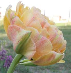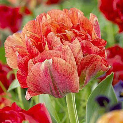 Тюльпан Gudoshnik Double (Гудошник Дабл). Светло-оранжевый с красным штрихом, множество оттенков, очень крупный оригинальный цветок. Высота 50 см.