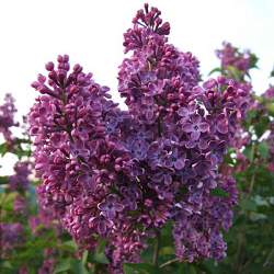 Сирень Смуглянка. Бутоны среднего размера, пурпурно-фиолетовые. Цветки среднего размера, простые, окраска фиолетовая, в центре фиолетово-лиловая. Лепестки округлые, с нижней стороны более яркие.