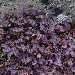 Ацена Purpurea (Пурпуреа). Многолетник с округлыми ярко-пурпурными листьями с острыми зубчатыми краями. Прекрасное почвопокровное растение. Разрастаясь образует очень плотное покрытие.