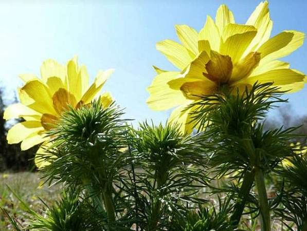 Адонис весенний. Главное, за что любят растение адонис весенний садоводы, — это за его долговечность. На одном месте эти цветы могут расти до пятидесяти лет и ежегодно радовать растениеводов буйным, солнечным цветением. Если высадить даже один маленький кустик, через пару лет он разрастется так, что образует небольшую куртину. Единственный минус — плохая всхожесть семян, поэтому размножать адонис рекомендуется делением корневища.