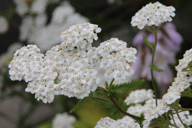 Тысячелистник Parry's White (Перрис Вайт). Порадует высокими декоративными данными и неприхотливостью к условиям выращивания. Для этого сорта характерно эффектное и длительное цветение, во время которого на кустах распускаются плотные соцветия, состоящие из белоснежных цветов. Кусты прекрасно смотрятся в одиночных и смешанных группах, они отлично сочетаются с яркими цветами и декоративными злаками.