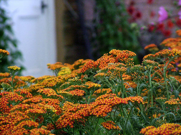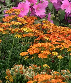 Тысячелистник Terracotta (Терракота). Представляет собой многолетнее травянистое растение с прямыми, хорошо облиственными стеблями. Высота его составляет около 60-80 см, ширина куста 60-80 см. Листья дважды-, трижды- перисто-рассеченные серо-зеленого цвета, папортниковидные. Цветки-корзинки достигают 7 см в диаметре и собраны в щитковидные соцветия коричневато-оранжевого оттенка, со временем желтеют до золотого цвета. Цветение происходит в июле и продолжается 40-45 дней.