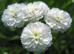 Куст компактный, прямой, с облиственными стеблями до 1 м высотой. Листья серо-зеленые, мелкие, цельные, линейные, с пильчатым краем, сидячие, расположены в очередном порядке. Корзинки мелкие, диаметром до 1,5 см, собраны в рыхлые щитковидные соцветия. Обертки полушаровидные, трехрядные, листочки широколанцетные, с бурым пленчатым краем. Язычковые цветки перламутрово-белые. Цветет с июля в течение 30–35 дней, обильно.