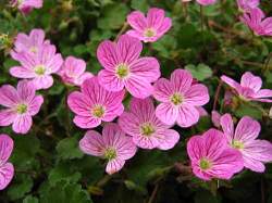 Аистник Bishop's Rose (Бишопс Роуз). Очень милое маленькое растение, образует низкую кочку крошечных, филигранно-точеных зеленых листьев. Звездчатые по форме маленькие розовые цветки с жилками появляются с конца весны до осени. Легко делится кустами ранней весной. Должен иметь превосходный дренаж, особенно во влажных зимних регионах.