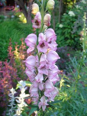 Аконит Rubellum (Рубеллум). Цветки бледно-розовые. Очень декоративен. Цветение продолжительное. Соцветия аконитов можно использовать для букетов. Срезку производят, когда распустится одна треть цветков.
