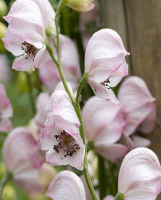 Аконит Rubellum (Рубеллум). Цветки бледно-розовые. Очень декоративен. Цветение продолжительное. Соцветия аконитов можно использовать для букетов. Срезку производят, когда распустится одна треть цветков.
