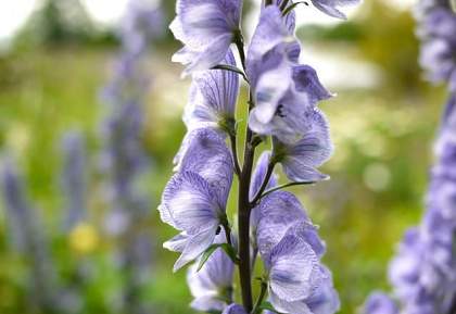 Аконит Stainless Steel (Стейнлесс Стилл). Красивоцветущий многолетник. Высота взрослого растения достигает 100-120 см. Цветет сорт в июле-августе. Цветки синего или сине-голубого кораса, собранные в крупных вертикальных соцветиях. Растение предпочитает солнце или полутень.
