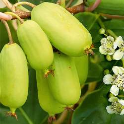 Актинидия Аргута Jumbo (Джамбо). Женское растение. Итальянский сорт с крупными вкусными сладкими плодами цилиндрической формы, зеленовато-жёлтыми при созревании. Осыпаемость низкая, хороший промышленный сорт.