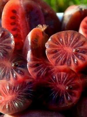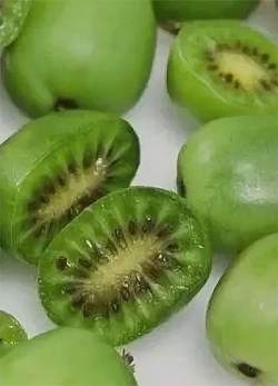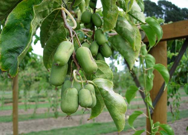 Актинидия коломикта Ленинградская Крупноплодная. Женский сорт. Плодоносит в августе сентябре. Высота лианы до 4 м. Плоды созревают в середине августа. Ягоды крупные (до 6 г), правильной формы, темно-зеленого цвета со светлыми полосами. Вкус десертный, сладкий. Если сорвать ягоды недозрелыми, то в течение 2-3 дней в помещении они дозреют, при этом вкусовые качества не изменятся.