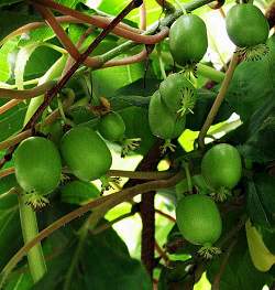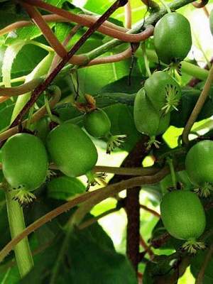 Актинидия Коломикта Памяти Учителя. Женское растение. Ранне-среднего срока созревания. Плоды средней величины, массой 3 г (до 5 г), овальной формы, тёмно-зеленого цвета. Вкус сладкий с небольшой кислинкой и ананасовым ароматом. Урожайность 2 кг с растения.
