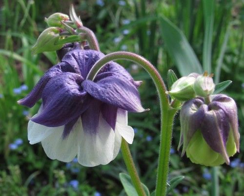 Аквилегия Warwick (Варвик). Многолетнее травянистое растение с толстым стержневым корнем. Стебли прямостоячие, разветвленные, высотой 60-80 см и шириной 45 см. Листья дважды или трижды перисто-рассеченные, с сизым налетом, декоративные до осени. Цветки темно-фиолетовые, густомахровые. Цветение с июня до конца июля.