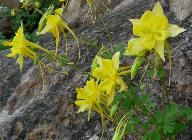 Аквилегия Желтый Гигант. Очаровательный сорт. Несмотря на то, что цветки огромные, смотрится изящно и необычно. Неприхотлива, достаточно компактна. Куст высотой около 30 см. Прекрасно сочетается со всеми растениями, цветущими в мае-июне.