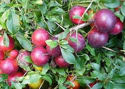 Слива русская (Алыча) Чук. Позднего срока созревания. Дерево относительно слаборослое. Крона плоскоокруглая, компактная, густая. Плоды выше среднего размера, 28 г, округло-яйцевидной формы. Окраска кожицы темно-бордовая. Кожица тонкая, плотная.