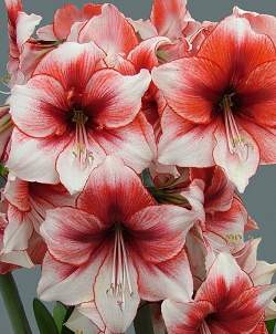 Амариллис Temptation (Темптейшен) — высота цветоноса до 50 см. Великолепный экзотический цветок. Лепестки широкие, слегка волнистые, заостренные. Необыкновенной окраски — основной тон белый с красными полосами и растушевкой от центра. По краю лепестков тонкая аккуратная красная обводка.