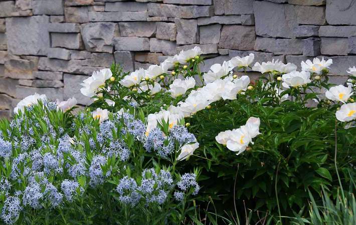Довольно плотный кустик вырастает до 90 см в высоту. Стебли прямые, густооблиственные. Листочки узкие, чем-то напоминающие ивовые. Цветки звездчатой формы, голубого окраса. Амсония табермонтана пышно цветет с мая по июнь. А по осени листва становится желтой, украшая своим видом сад.