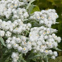 Анафалис жемчужный. Растение, которое используют в букетах (после высушивания не меняет окраску и не теряет форму). Многолетнее травянистое растение высотой 30-60 см. Корневище довольно тонкое, деревянистое, с многочисленными корнями, расположенными в основном горизонтально. Стебли травянистые, толстоватые, густооблиственные (листья серебристого цвета).