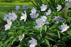 Anemone nemorosa (Анемона дубравная). Изящное весеннее растение до 25 см высотой. Корневище утолщенное, горизонтальное, цилиндрическое, оно ветвится и быстро разрастается, обеспечивая образование густых зарослей. Листья трижды рассеченные. Цветоносы одиночные, несут по одному цветку. Цветки белые с красивым фиолетовым оттенком на наружной стороне лепестков, до 2-6 см в диаметре, с 6-8 яйцевидными лепестками.