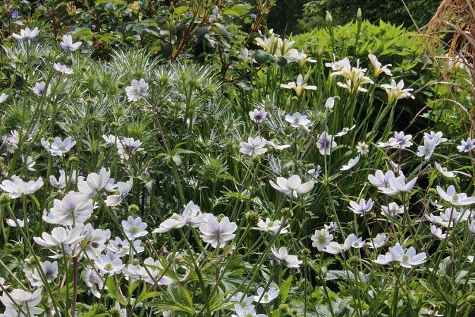 Анемоны неприхотливы и долговечны. Если сочетать при посадке позднецветущие (анемона войлочная, анемона японская) и ранние виды анемон (анемона хубейская), то они будут украшать участок максимально долго.