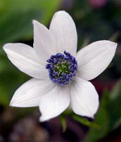 Анемона Левелли. Белые цветки с темным центром. Лепестки снаружи сиреневатые. Беспроблемно зимует в Подмосковье без укрытия. Цветет в июне-июле.