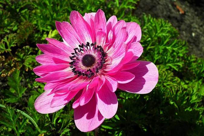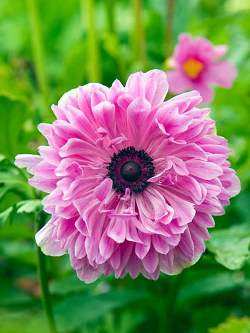 Анемона махровая Pink (Пинк). Элегантное многолетнее растение, незаменимое в любом саду. Цветки крупные, розового цвета. Сердцевина состоит из тёмных тычинок, собранных в пучок. Цветение анемоны приходится на май-июль.
