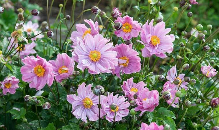 Анемоны неприхотливы и долговечны. Если смешивать при посадке поздно цветущие (анемона войлочная, анемона японская цветут на большинстве территории России до октября месяца) и ранние сорта анемон (анемона хубейская), то они будут украшать участок максимально долго. Высота растения 90-100 см.