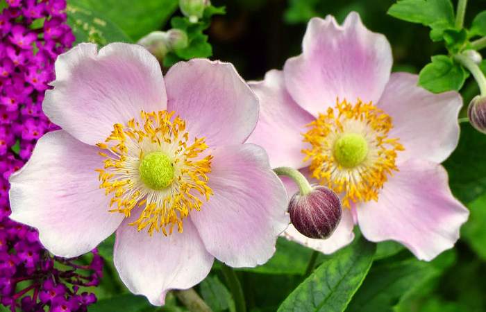 Анемоны великолепно смотрятся в композициях с астильбами, астрами, осеннецветущим аконитом (Aconitum napellus или A. carmichaelii), клопогоном ветвистым (Cimicifuga ramosa), зацветающим в сентябре.