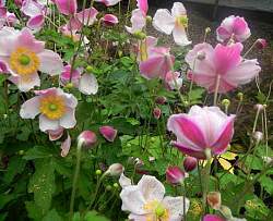 Анемоны неприхотливы и долговечны. Если смешивать при посадке поздно цветущие (анемона войлочная, анемона японская цветут на большинстве территории России до октября месяца) и ранние сорта анемон (анемона хубейская), то они будут украшать участок максимально долго. Высота растения 90-100 см.