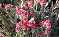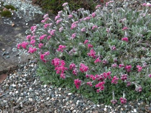 Антеннария Rubra (Рубра), или Кошачья лапка. Многолетнее травянистое растение высотой в период цветения от 10 до 30 см, со стелющимися укореняющимися побегами. Разрастаясь, образует плотный ковер до 50 см в диаметре. Корневище тонкое. Листья ланцетной формы, на длинных черешках, образуют розетку. Листья и ствол опушены белыми войлочными волосками для сохранения влаги. Стеблевые листья цветоносов маленькие, опушенные, прижаты к стеблю.