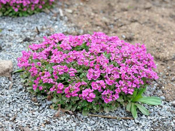 Арабис Deep Rose (Дип Роуз). Почвопокровное растение 10-15 см высотой с мелкими розетками и цветками. Крайне неприхотлив. Очень быстро образует плотные куртины. Морозостоек, но в бесснежные зимы желательно укрытие хвойным лапником. После цветения требует обрезки.