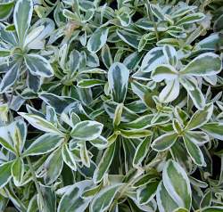 Почвопокровное растение 25-30 см высотой с мелкими розетками и цветками. Крайне неприхотлив. Очень быстро образует плотные куртины. Морозостоек, но в бесснежные зимы желательно укрытие хвойным лапником. Привлекателен, прежде всего, красивыми пестрыми листьями. Цветение не такое обильное как у сортов с зелеными листьями.
