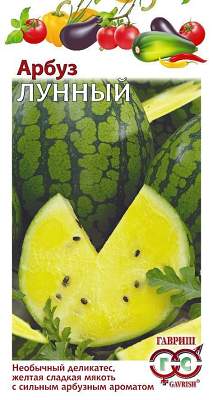 Арбуз Лунный с желтой мякотью. Ранний урожайный сорт арбуза с желтой мякотью. Первые плоды готовы к употреблению через 70-90 дней после появления всходов. В этом сорте удивителен не только цвет, но и потрясающий вкус сахарной мякоти с нотками манго. Кроме того арбуз практически не содержат семечек.