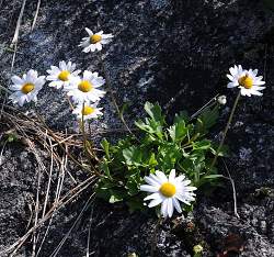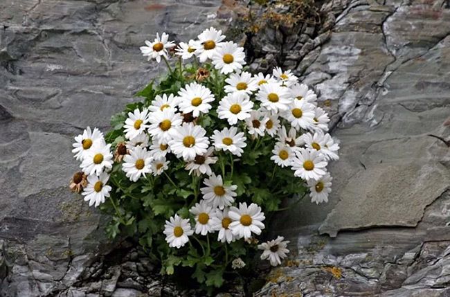 Арктоцвет арктический. Также называют Дендрантема или Хризантема арктическая. Стелющийся многолетник. Розетка листьев низкая, цветоносы до 30 см высотой. Соцветия похожи на ромашку. Очень хорошее растение для альпинария.