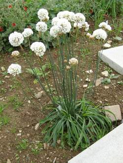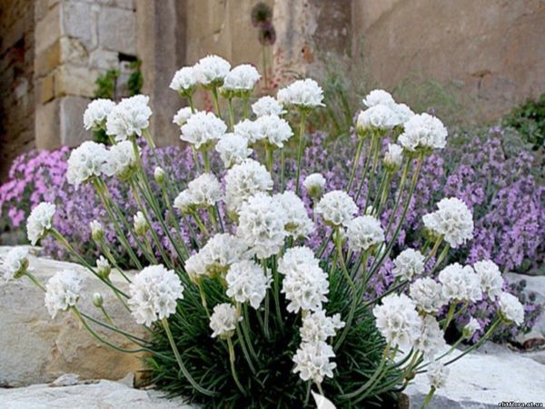 Армерия прекрасная Ballerina White (Балерина Вайт). Один из самых привлекательных многолетников для альпийских горок и гравийных садиков. Образует кочку из длинных узких листьев. Соцветие шарообразные из мелких белых цветков.