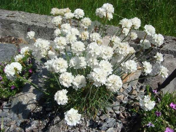 Армерия приморская Morning Star White (Монинг Стар Вайт). Очаровательный компактный сорт с белыми цветками, собранными в шаровидные соцветия. Цветет в мае чрезвычайно обильно. Хорошо растет на солнечных местах. Почва требуется дренируемая. Подходит для оформления альпинариев и рокариев.