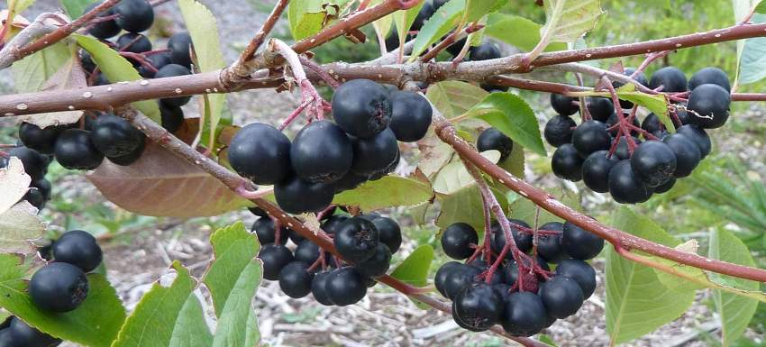 Арония черноплодная Hugin (Хугин). Шведский сорт, который представляет собой кустарник высотой до 2 м с округлой кроной. Цветет в мае-июне в течение 2 недель. Цветки белые, собраны в кисти, обоеполые, очень красивые.