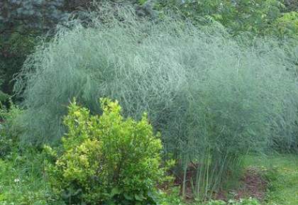 Аспарагус, спаржа Pacific Purple (Пацифик Пёпл). Деликатесное овощное и декоративное растение. Урожайность даже более высокая, чем у зелёных сортов. Молодые побеги тёмно-фиолетовые, съедобны в вареном виде, они очень нежные и имеют сладковатый вкус. Чтобы побеги были нежными и сохраняли красивую окраску, их осенью или весной высоко мульчируют. Взрослые побеги воздушные, кружевные, голубовато-зеленые.