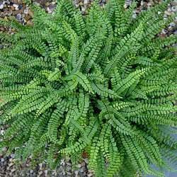 Асплениум волосовидный (Asplenium trichomanes). Это влаголюбивое и тенелюбивое растение. Широко распространен в нижнем лесном поясе гор Кавказа, где по известняковым скалам в ущельях образует целые заросли. Абсолютно зимостоек (зона 2). Один из самых изящных папоротников с вечнозелеными перистыми, округлыми листьями длиной 10-20 см, отходящими от короткого корневища.