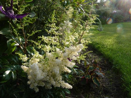Астильба Astary White (Астари Вайт). Новый сорт. Невысокая астильба (высота до 40 см). Листья темно-зеленые, глянцевые. Соцветия плотные, белоснежные, ароматные. Цветет в июле около трех недель.