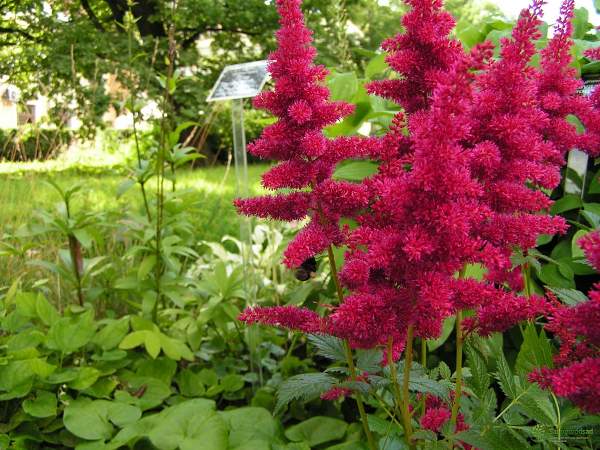 Сроки цветения различных сортов астильбы — с конца июня до сентября, можно подобрать такую коллекцию, чтобы любоваться цветением почти все лето. Оптимальная освещенность — разреженная тень или затенение в самое жаркое время дня, многие астильбы прекрасно чувствуют себя и на открытом солнце.