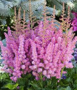 Сроки цветения различных сортов астильбы — с конца июня до сентября, можно подобрать такую коллекцию, чтобы любоваться цветением почти все лето. Оптимальная освещенность — разреженная тень или затенение в самое жаркое время дня, многие астильбы прекрасно чувствуют себя и на открытом солнце.