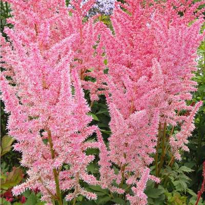 Астильба Mighty Pip (Майти Пип). Высокий видный сорт, удостоенный многих наград. Соцветия ромбовидные, насыщенно-розовые, на пурпурных черешках! Куст пышный с ярко-зеленой листвой.