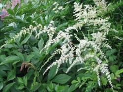 Астильба Тунберга Moerheimii (Мойерхайма). Высокая (до 110 см) ажурная астильба, цветущая достаточно поздно — с конца июля. Сорт великолепен в цветниках природного стиля. Он имеет бело-кремовые изящные поникающие соцветия.