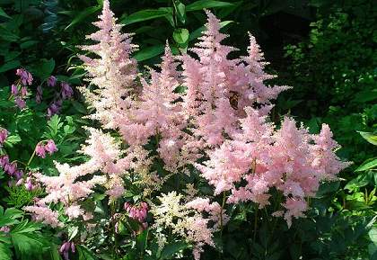 Сочетайте астильбы с многолетниками, имеющими цельные листья — баданами, бузульниками, хостами, бруннерами — и никогда не ошибетесь. Старайтесь избегать совместной посадки астильб с разными типами соцветий. Так, поникающие соцветия астильбы простолистной и ромбовидные плотные соцветия астильбы Арендса, конечно же, имеют разное образное наполнение. Помните, что массивы всегда смотрятся эффектней одиночных посадок. Вот и все несложные правила по размещению астильб в саду.