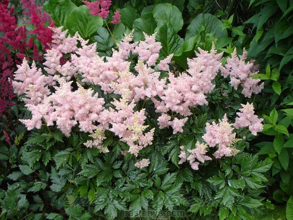 Астильба Арендса Sister Theresa (Систер Тереза). Соцветия очень плотные, набитые, нежно-лососево-розовые, ромбовидные, пушистые, с приятным, медовым ароматом.