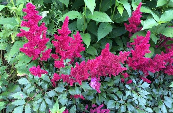 Сроки цветения различных сортов астильбы — с конца июня до сентября, можно подобрать такую коллекцию, чтобы любоваться цветением почти все лето. Оптимальная освещенность — разреженная тень или затенение в самое жаркое время дня, многие астильбы прекрасно чувствуют себя и на открытом солнце.