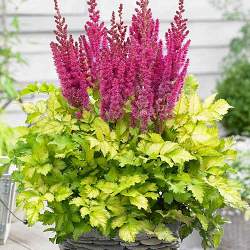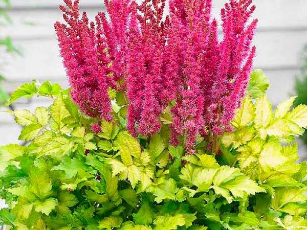 Астильба Thunder and Lightning (Сандер энд Лайтнинг). Мощная и яркая астильба. Высота цветоносов до 60 см. Цветки ярко-лилово-розовые. Листья золотисто-зеленые. Цветет в июле-августе.