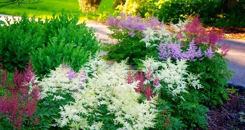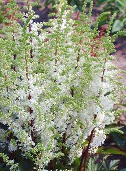 Астильба Whiteberry (Уайтберри). Чудесный карликовый сорт с невероятно обильным и продолжительным цветением. Белоснежные плотные, густоопушённые соцветия эффектно выглядят на фоне ажурной темно-зеленой листвы. Прекрасно подходит для выращивания в контейнерах и для переднего плана бордюра. Отлично сочетается с растениями любой окраски.